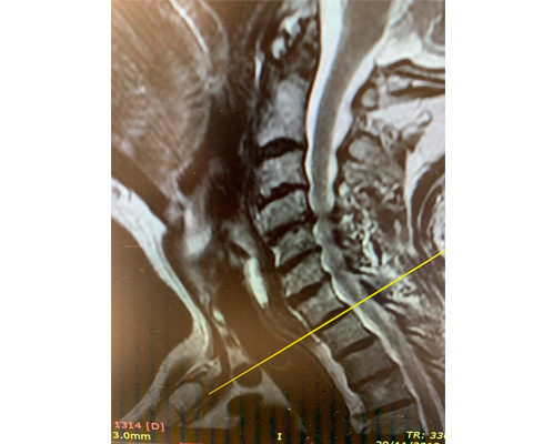 Masculino de 68 años de edad, presentaba dolor de cuello irradiado hacia ambos brazos y manos, así como debilidad muscular de la 4 extremidades.